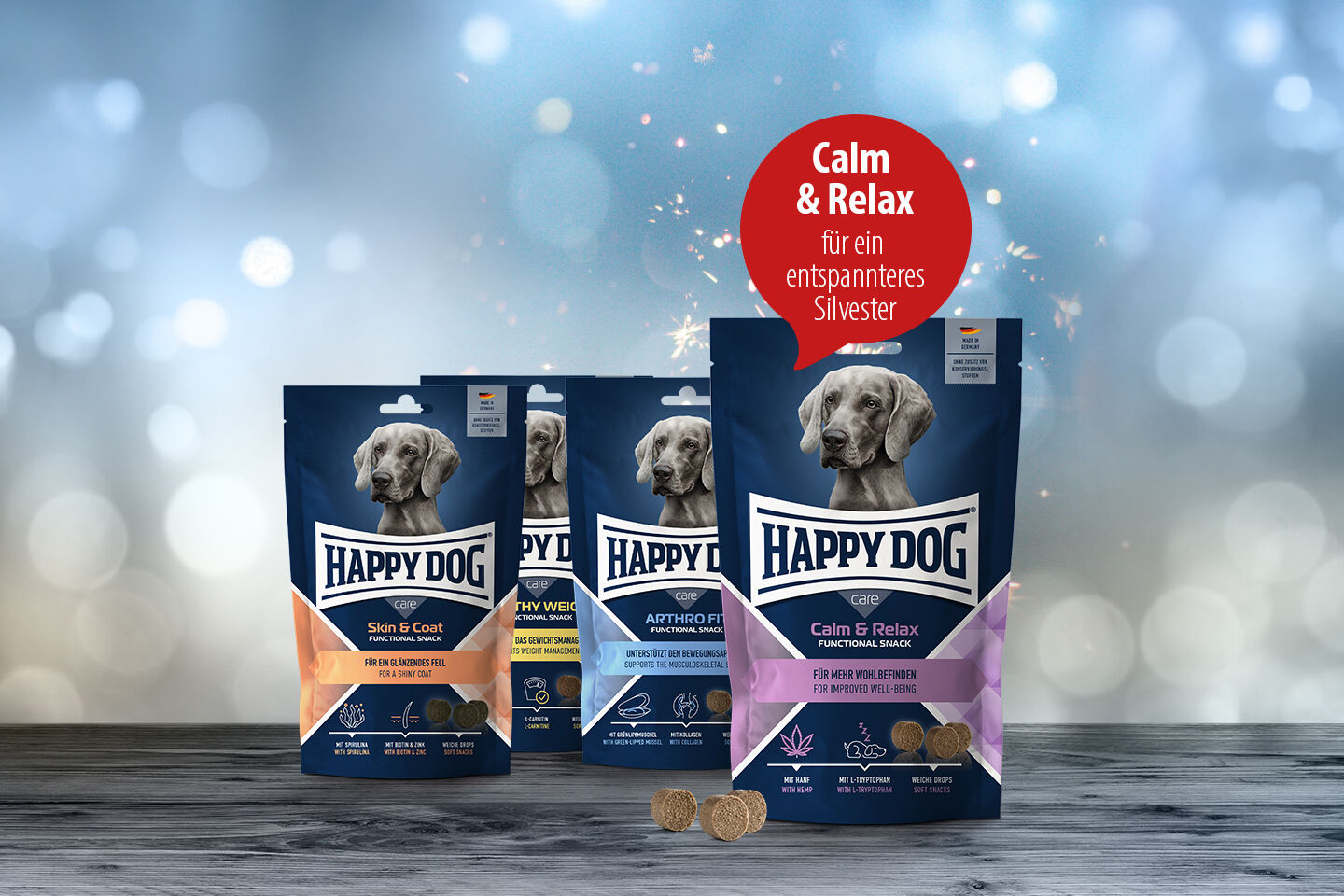 Happy Dog Care Snacks, unsere funktionellen Leckerlis für besondere Bedürfnisse, kannst du jetzt mit 10 % Probierrabatt kennenlernen.*