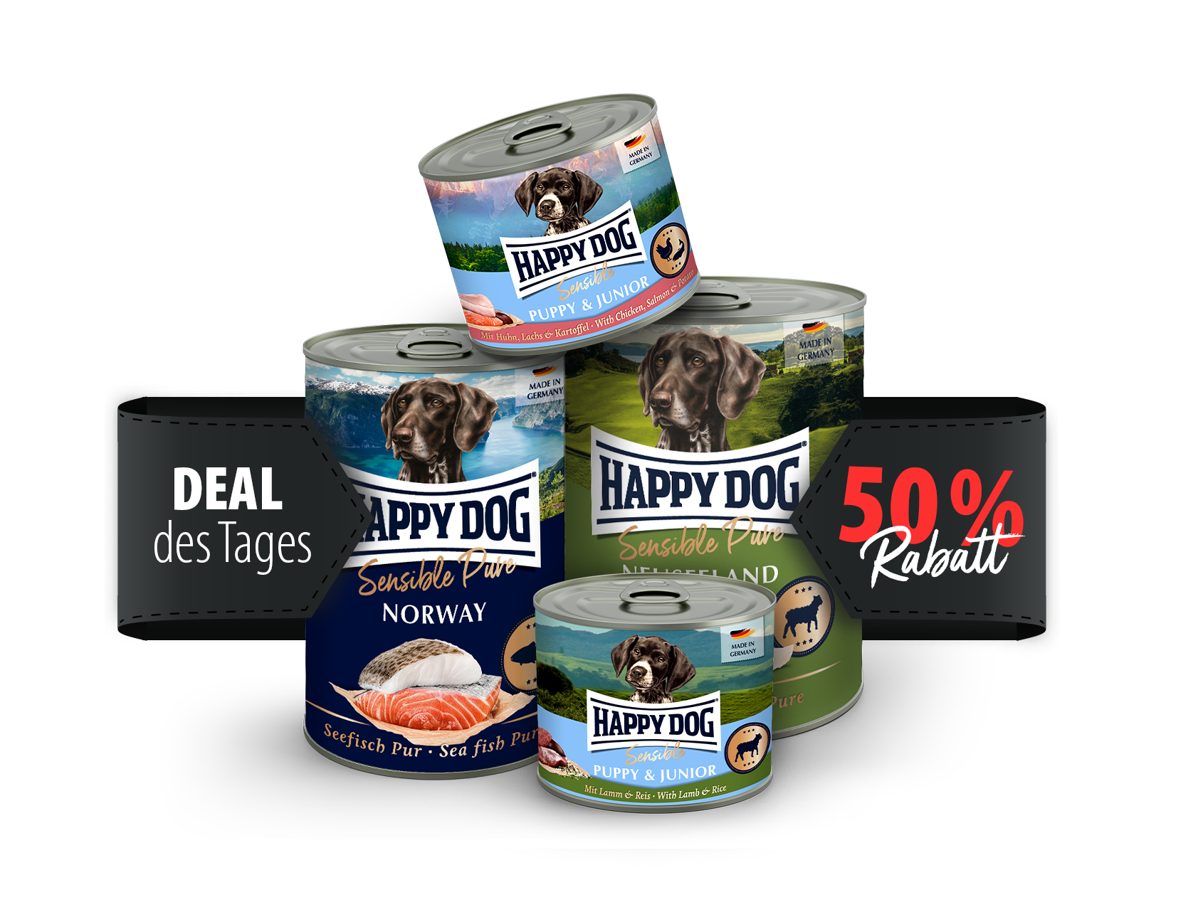 Aus Liebe zum Haustier stellen wir seit mehr als 50 Jahren im bayerischen Wehringen unser Happy Dog Hundefutter her. Weil uns die Gesundheit unserer Vierbeiner sehr wichtig ist, beschäftigen wir uns sehr intensiv mit den Ansprüchen von Hunden an ihre Ernährung und entwickeln mit großer Leidenschaft ausgefeilte Rezepturen. Für die Zubereitung von Happy Dog Hundefutter verwenden wir natürliche Zutaten, die so weit möglich aus unserer Region stammen und von höchster Qualität sind. Zusätze wie Zucker, Farbstoffe, Aromastoffe oder Konservierungsmittel lehnen wir für unsere Rezepturen strikt ab. Doch die besten Zutaten alleine ergeben noch nicht das perfekte Futter für deinen Hund. Erst die schonende Zubereitung der exquisiten Rezepturen im Thermostufenmix® macht unser Happy Dog Hundefutter zur besten Hundefuttermarke Deutschlands.