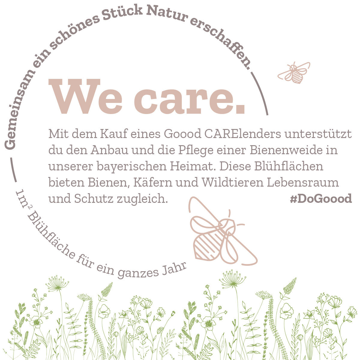 Jeder Goood CARElender sorgt nicht nur für die perfekte Weihnachtsstimmung bei dir und deinem Hund, sondern unterstützt gleichzeitig den Anbau und die Pflege einer Bienenweide in unserer bayerischen Heimat. Diese Blühflächen bieten Bienen, Käfern und Wildtieren Lebensraum und Schutz zugleich. Jeder Kalender sichert 1 qm Blühfläche für ein ganzes Jahr!