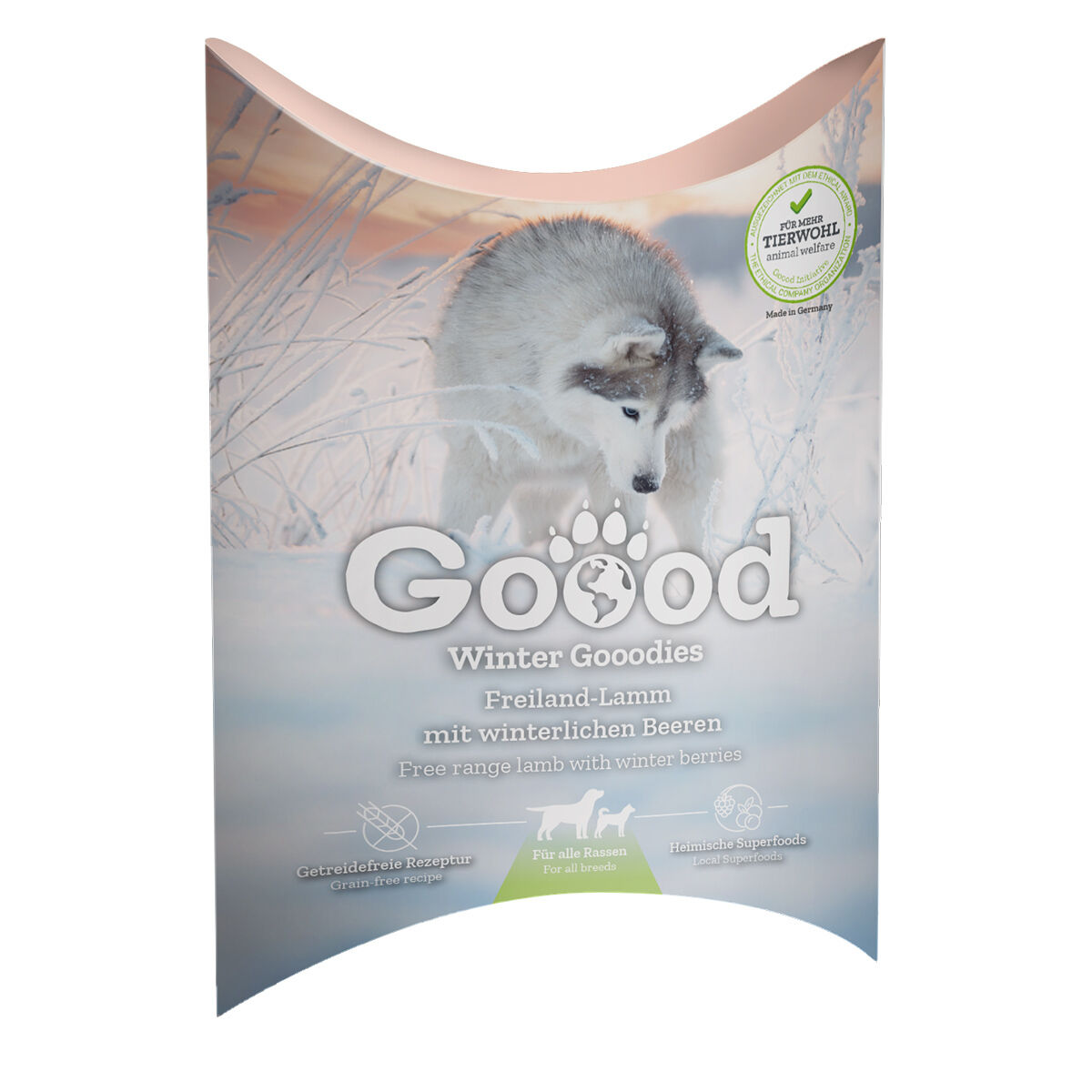 Verwöhne deinen Hund mit den Goood Winter Gooodies und genießt gemeinsam die besinnliche Zeit. Diese Limited Edition ist nur für kurze Zeit erhältlich – also greif schnell zu und mach deinem Vierbeiner eine winterliche Freude!