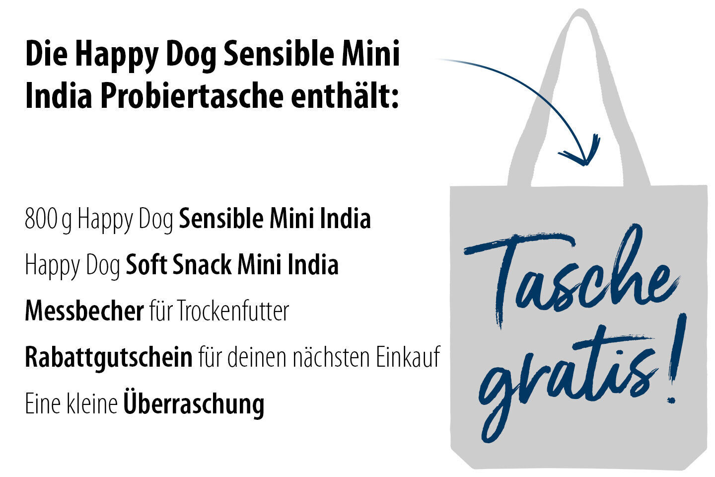 Du bist skeptisch, ob eine vegetarische Ernährung für deinen kleinen Hund artgerecht ist? Auch unser vegetarisches Feinschmeckermenü versorgt deinen kleinen Hund mit allen Nährstoffen, die er braucht. Ferner hat unser vegetarisches Hundefutter bereits zwei Auszeichnungen erhalten. Tester des unabhängigen Portals FutterTester.de haben Happy Dog Sensible India mit sehr gut- ausgezeichnet und vom Fachmagazin pet wurde India zur Neuheit des Jahres 2021 gekürt. Speziell für kleine Hunde gibt es unser erstes vegetarisches Trockenfutter in der Mini-Variante mit kleineren Kroketten und passend dazu gibt es unseren vegetarischen Hundesnack in Herzform.